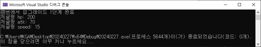 std::cout << "챔버에서 업그레이드 1단계 완료" << std::endl;
